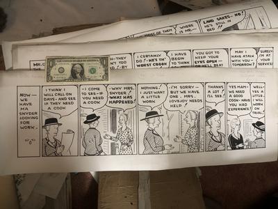 Original cartoon strip art from the late 1920s- 1930s, and practice sketches. Some on card stock, some on thin paper. Large scale, 9.5 x 27 inches, some smaller.
